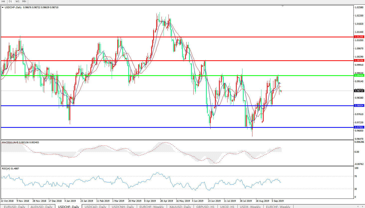 美元兑瑞郎USDCHF 日线图: