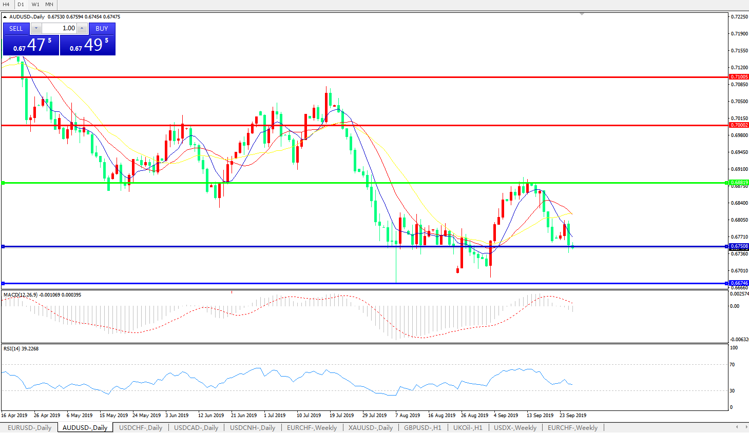 澳元兑美元在周三日内再度回落,这意味着隔夜反弹上攻0.68关口的试探再度无功而返。虽然,日内新西兰联储维稳利率并释放相对鹰派措辞的状况,本该对澳元汇价有连带拉动,但是这却敌不过风险偏好情绪大背景的恶化; 隔夜,美国总统特朗普被惊爆再度陷入政治丑闻,将面临弹劾指控,此消息连同此前英国首席被法院裁决败诉的消息一同,令美欧政局风险一同浮现,这对于市场风险偏好情绪构成重挫。并且,这也可能令美国与全球多个经济体之后在贸易领域的谈判再添变数,对于在贸易消息方面敏感的澳元,这并不是什么好消息; 所以,澳洲联储主席洛威周二的讲话虽然平抑了下周降息预期,推动澳元走向,但却敌不过外部负面消息的冲击。在经济外部环境堪忧的状况下,澳洲联储年内仍可能继续扩大宽松力度,这对于澳元中长期前景也并非吉兆