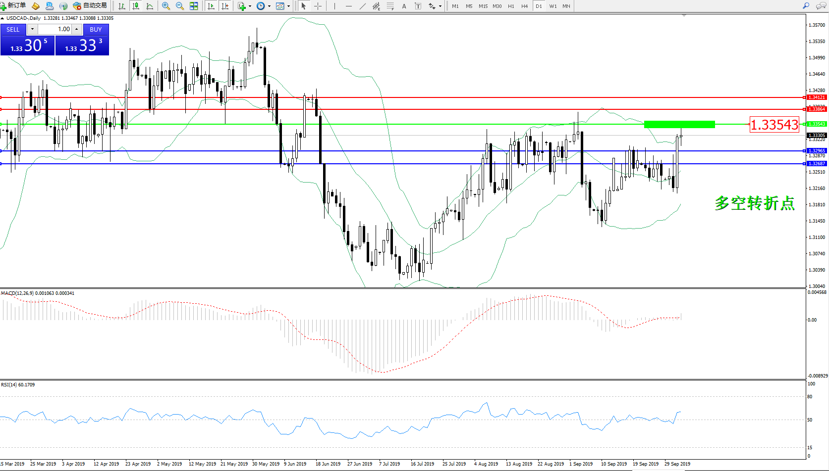 交易策略:1.33543下方看跌,目标1.32965、1.32687