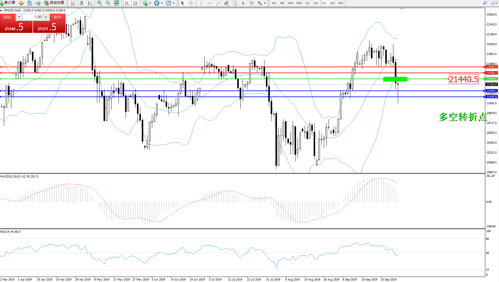 日经225指数10月3日(周四)收盘下跌437.11点,跌幅2.01%,报21341.50点。日本央行布委员布野幸利称:鉴于物价和通胀预期上涨乏力,必须在较长时间内维持有效的低利率;如果预见到物价目标面临的风险,日本央行必须全力避免这些风险变为现实。风险方面,布野幸利认为海外经济风险高企,全球经济面临的下行风险正在增加,并且日本央行前所未有地需要加强对物价增长动能所面临风险的监控。货币政策方面,布野幸利认为宽松措施有多重可能性,比如降息、加大资产购买、扩张货币基础等等。