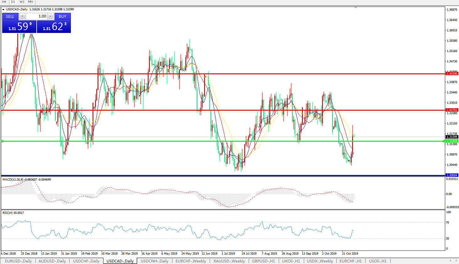 美元兑加元USDCAD    日线图: