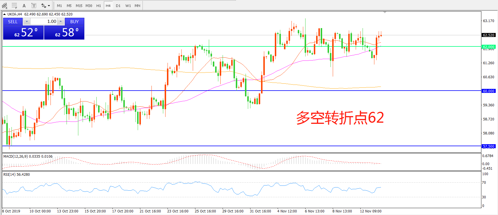 交易策略:在62.00之上看涨,目标64.50     66.00