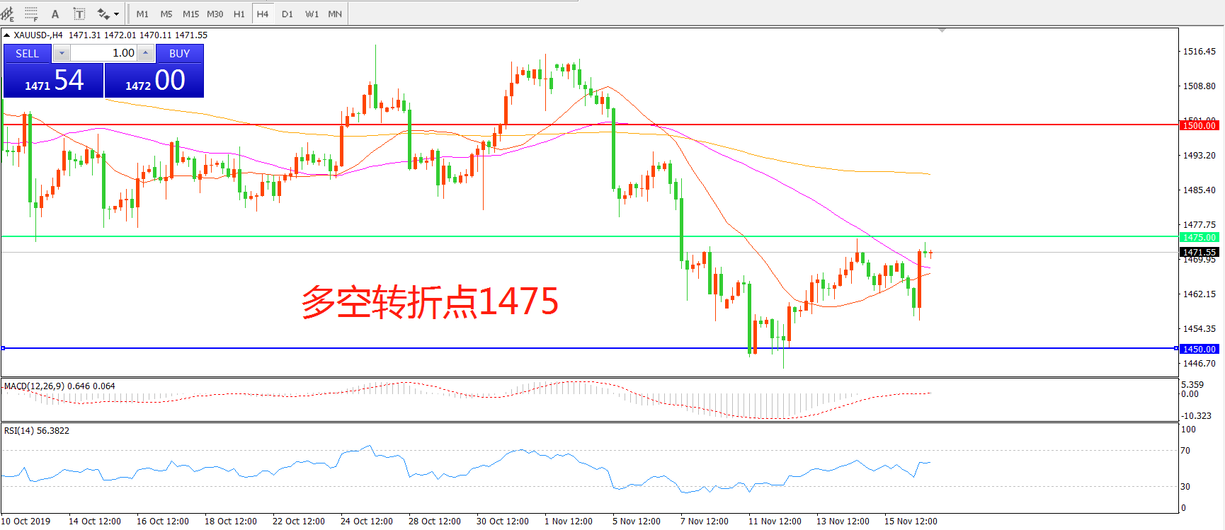 周二(11月18日),贸易谈判消息悬而未决,现货金价探底回升,收复1470关口,报1471.26美元/盎司。中国商务部表示中美双方正围绕第一阶段协议进行讨论,但并未公布具体细节,悬而未决的中美贸易和雾里看花的经济复苏让市场的乐观情绪有所消退,贸易谈判的后续发展将决定金价中期走势。