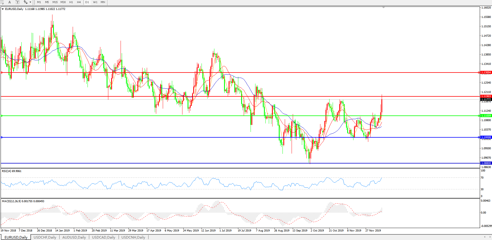 欧元兑美元EURUSD   日线图: