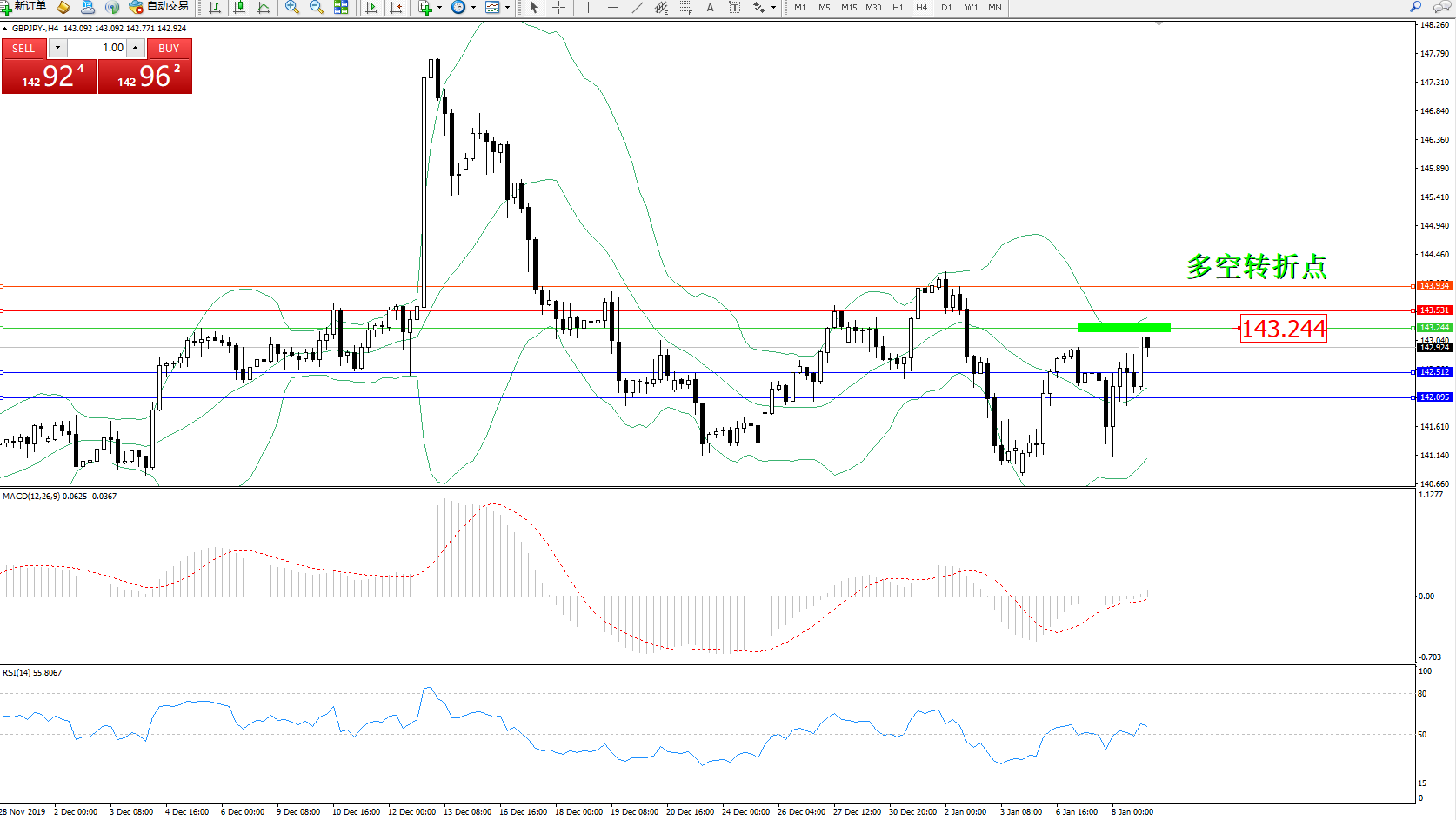 交易策略:143.244下方看跌,目标142.512142.095