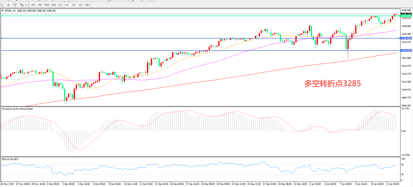 受贸易局势趋暖推动,周一美股三大指数集体收高,标普500指数上涨0.7%,收于3289.50点。波士顿联邦储主席罗森格伦周一发表讲话称,鉴于美国经济前景“相对乐观”,他认为美联储无需进一步调整利率。他预计2020年美国劳动力市场继续趋紧,通胀率将回到2%的目标。大型科技股齐涨,苹果涨逾2%,特斯拉暴涨近10%,均创历史新高,中概股普涨,阿里巴巴大涨3%,创下新高。