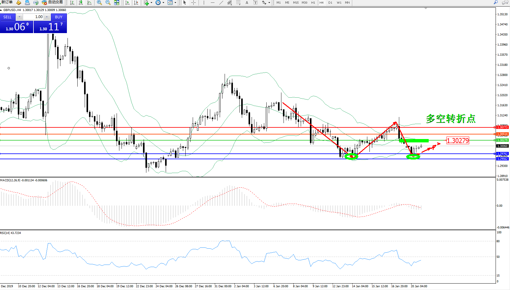 交易策略:1.30279下方看跌,目标1.29762、1.29562