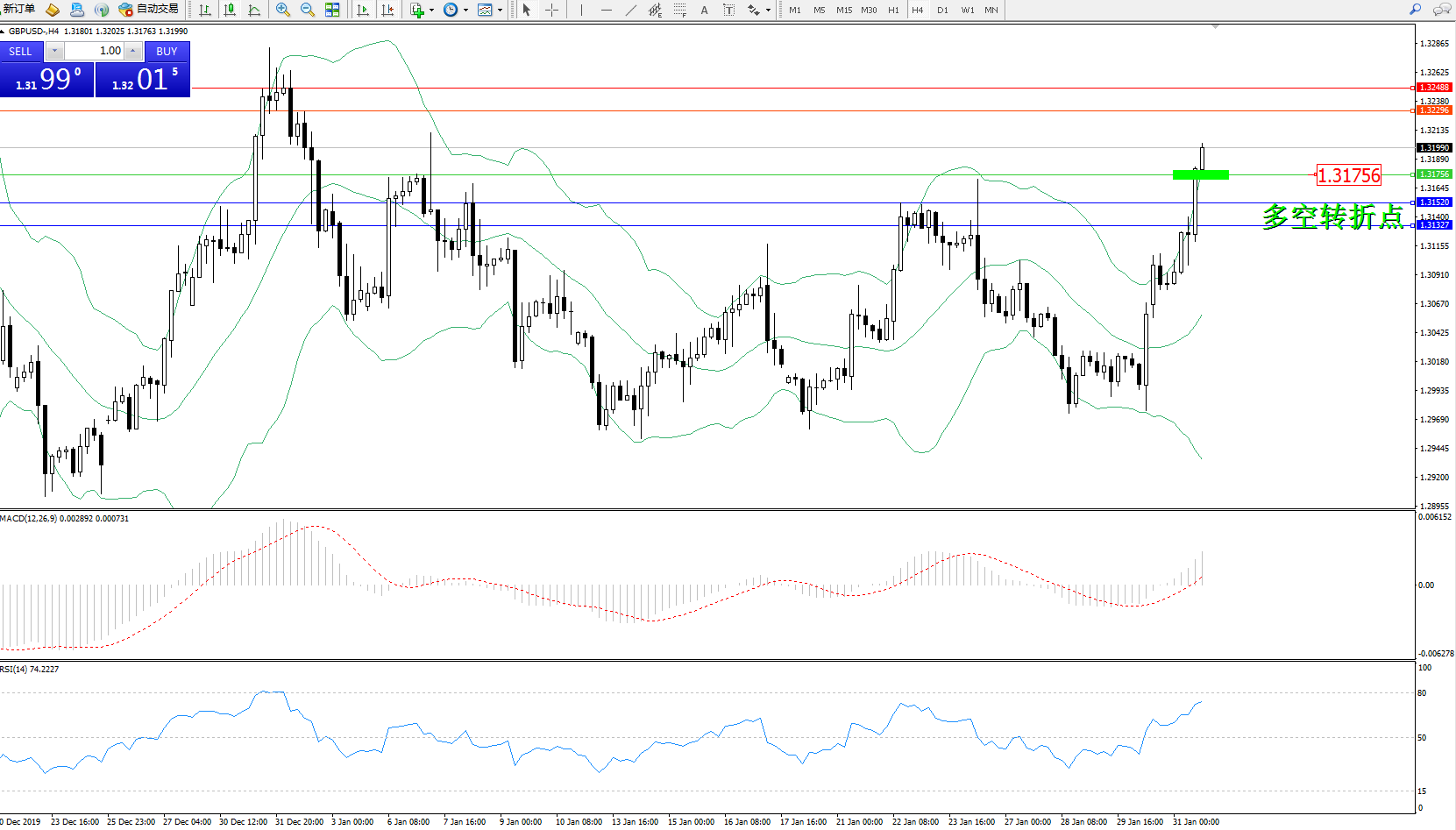 交易策略:1.31756上方看涨,目标1.32296、1.32488