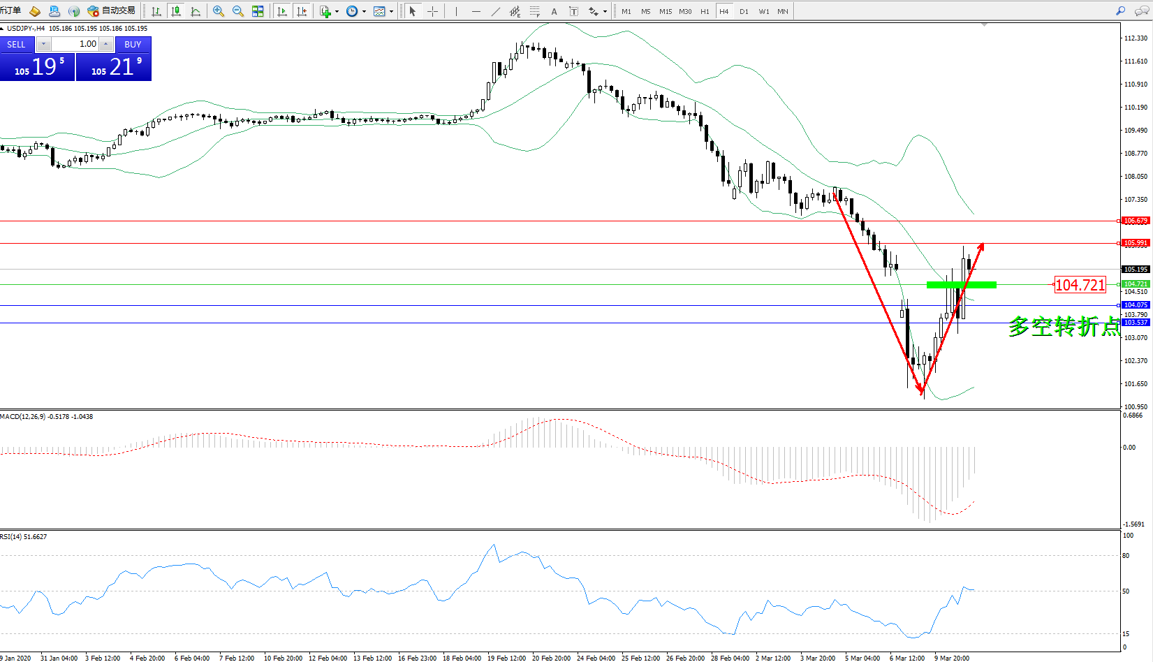 日元从周一创下的2016年以来高点回落,美元兑日元上涨3.2%105.64,日内金融市场恐慌情绪消散,国际油价大幅反弹,同时全球股市也大幅走高,美债收益率也有所走高,市场风险偏好情绪有所回暖,同时多国潜在的货币政策和财政政策也可能减轻疫情对全球经济的冲击,避险日元因此有所承压,基本上回吐了昨日的全部涨幅。特朗普宣布了系列财政刺激政策,暂时对日圆避险失去动力,美国方面重大的财政反应可能缓和市场对全球经济增长前景的忧虑。