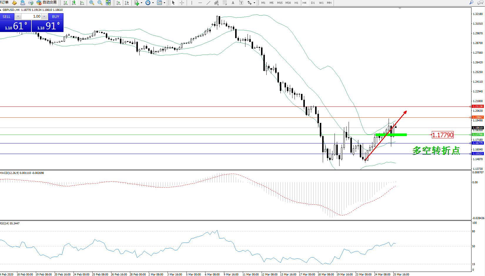 交易策略:1.17790上方看涨,目标1.19847、1.21138