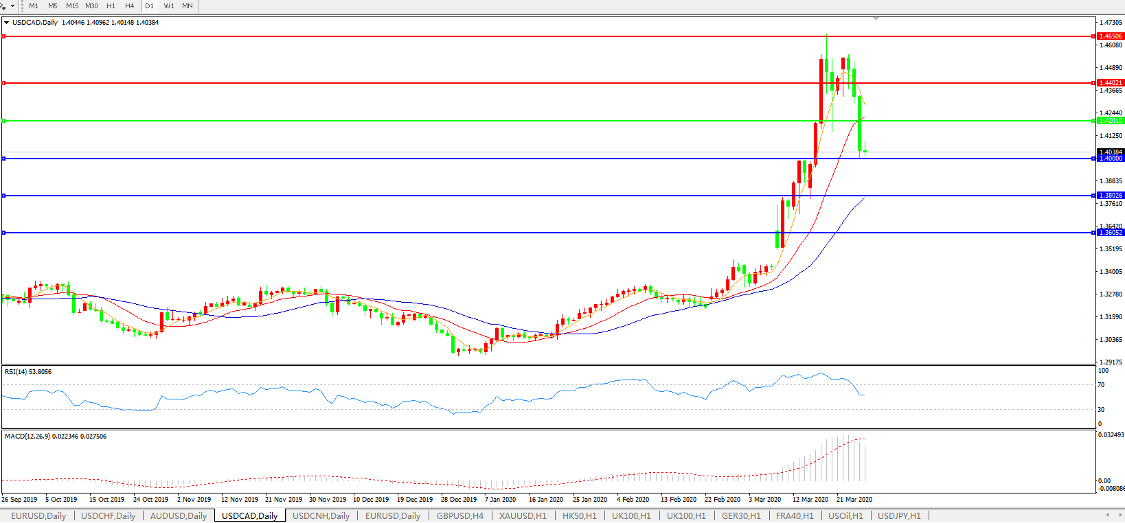 美元兑加元USDCAD    日线图: