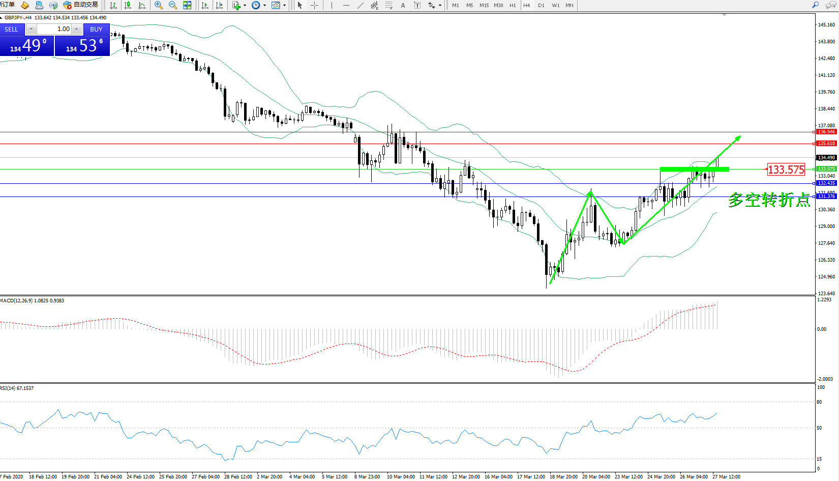 英镑兑日元刚刚触及134.00关口,最新报134.00,日图涨0.20%,英国3月服务业PMI创历史新低,3月综合PMI为历史新低,3月制造业PMI为3个月新低。英国PMI数据突显疫情爆发对英国经济造成巨大打击,程度甚至高于全球金融危机最严重时期。采取额外的防控措施将在未来数月进一步使经济瘫痪;出现一场可能前所未见的大规模经济衰退的可能性越来越大。3月调查数据与GDP增速季率环比下降1.5%-2.0%相符,这一降幅足以使经济在第一季度陷入萎缩。然而,这一下降或只是冰山一角,且会变得微不足道,第二季度将见证疫情造成更大的损失和经济低迷。