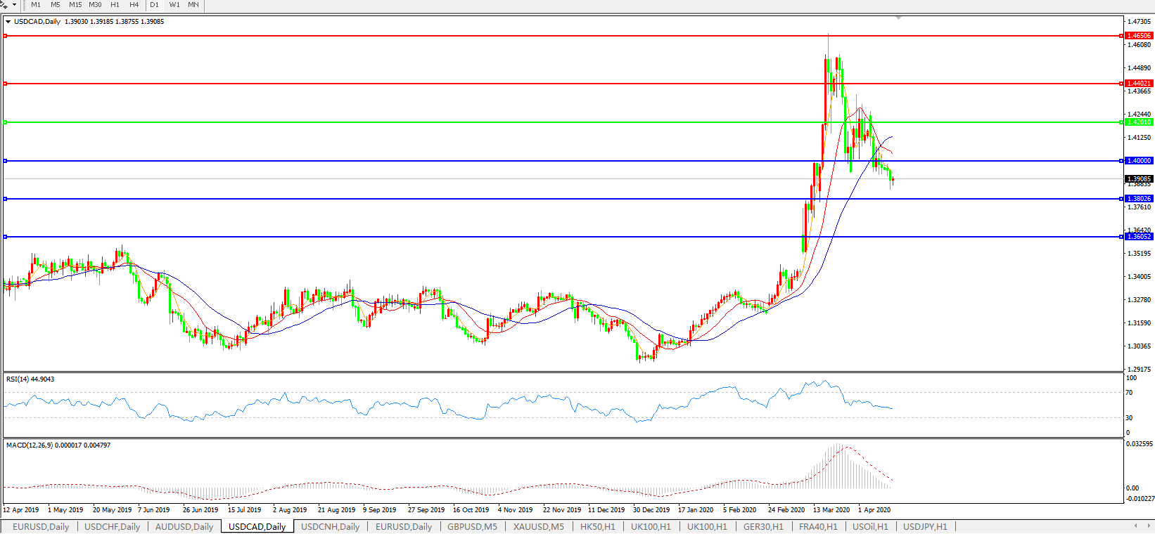 美元兑加元USDCAD    日线图: