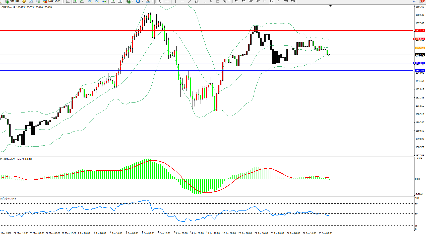 交易策略:165.969下方看跌,目标164.818、164.242