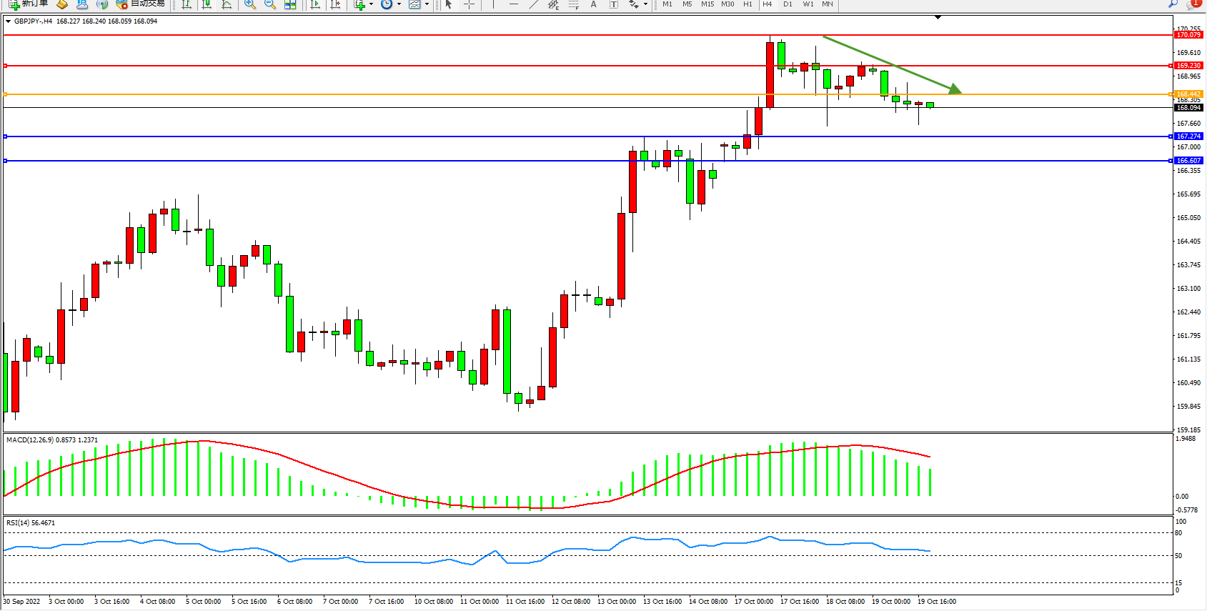 交易策略:168.442下方看跌,目标167.274、166.607