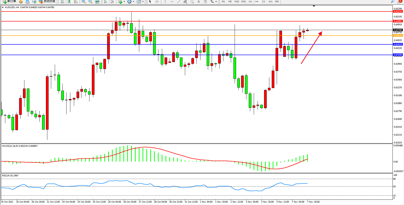 澳元兑美元维持0.64780附近震荡,预计澳洲联储将在12月进一步加息25个基点,然后结束加息周期,终端利率为3.1%。但仍预计澳洲联储将在2023年下半年降息,并料在2023年第四季度降息50个基点。