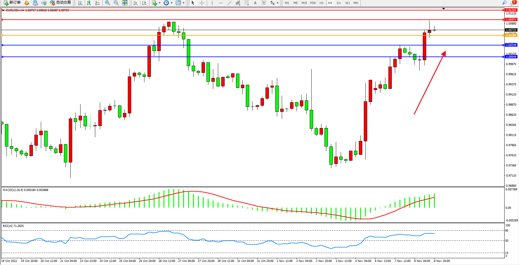 交易策略:1.00586上方看涨,目标1.00971、1.01207