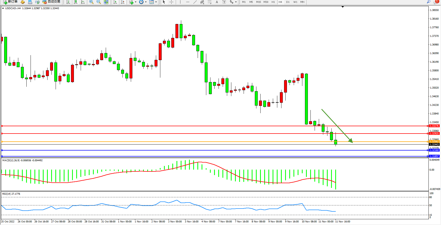 4小时图看:低位空头动力持续震荡下行,短期跌势未见止步,市场空头情绪依旧,MACD指标处于空头区域低位整理下移,RSI指标处于空头区域低位整理;