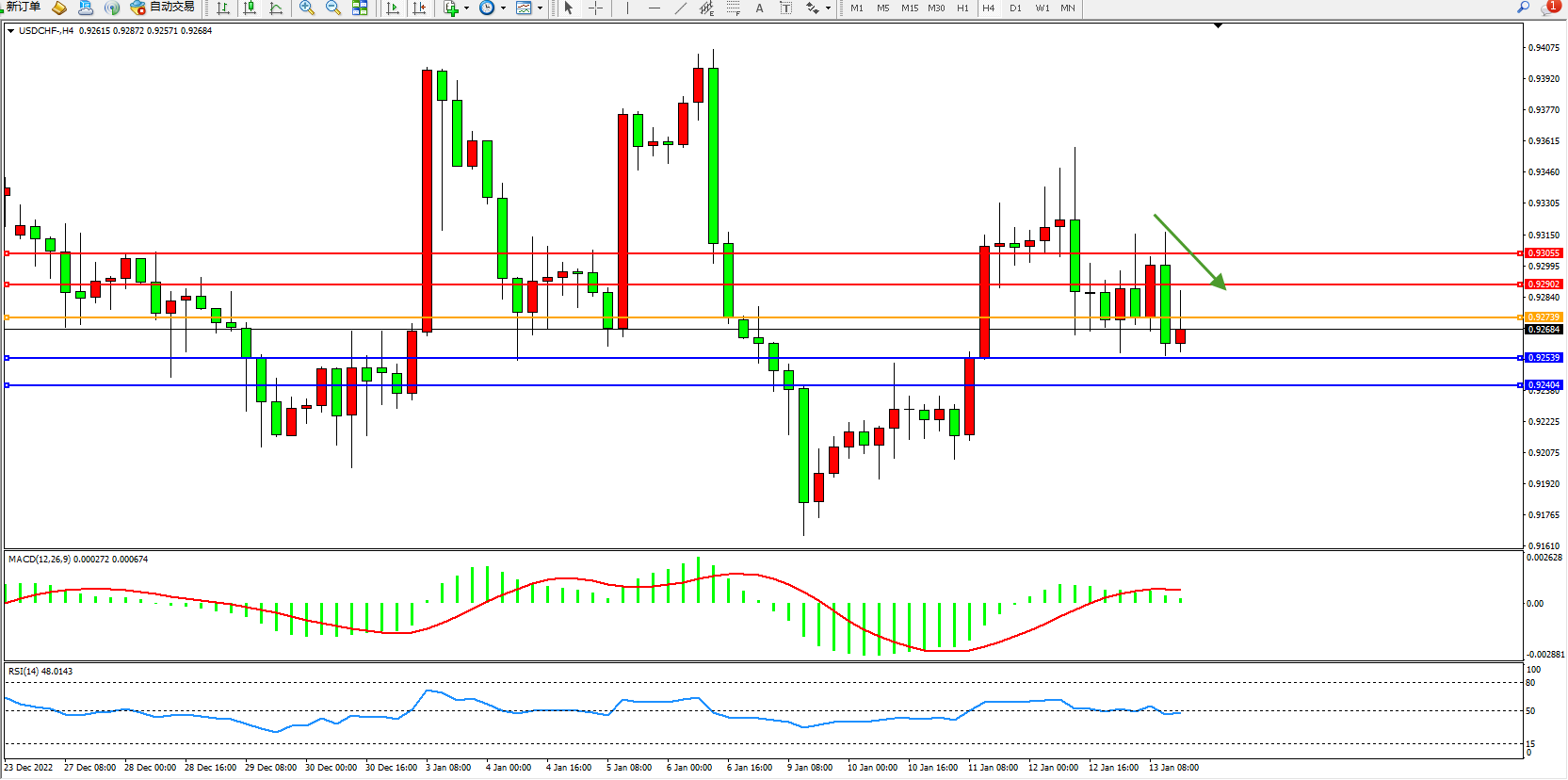 交易策略:0.92739下方看跌,目标0.92539、0.92404