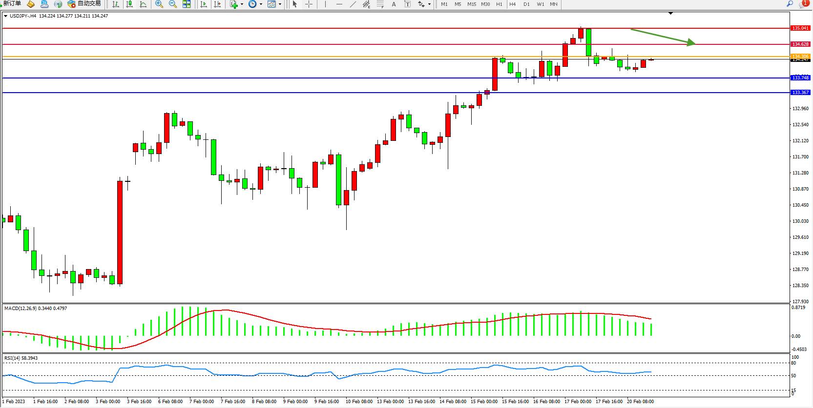 4小时图看:高位短期维持弱势整理,市场空头情绪开始缓慢涌现,但依旧处于高位徘徊中,MACD指标处于多头区域维持整理,RSI指标处于50均衡线上側弱势徘徊;