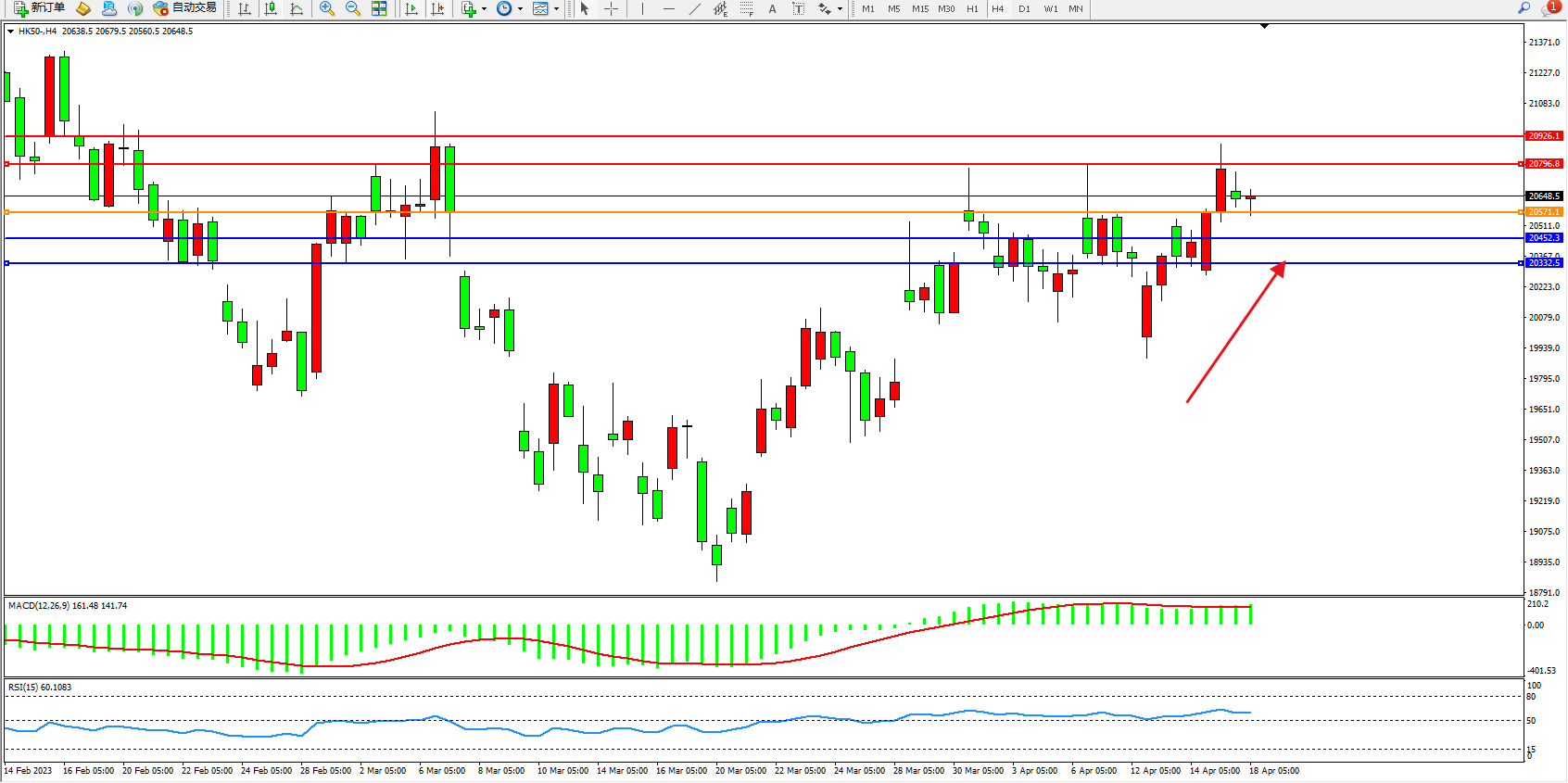 4小时图看:多头动力维持震荡上扬态势良好,短期有继续看涨迹象,市场多头持续拉升,MACD指标处于多头区域维持整理,RSI指标处于50均衡线上側徘徊;