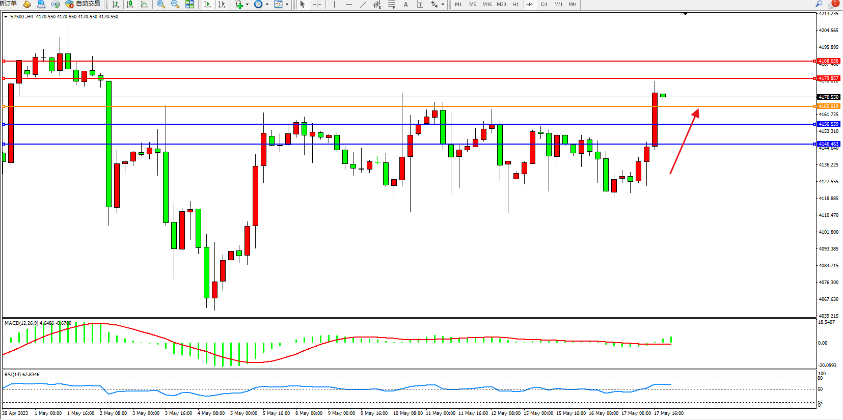标普500指数5月17日(周三)收盘上涨48.61点,涨幅1.18%,报4158.51点;美国众议院议长麦卡锡:为共和党呼吁在债务上限谈判继续之际提高支出限制辩护,工作要求有助于人们找到工作,有助于经济发展,这是我们应该做的,债务上限谈判不会讨论税收问题。