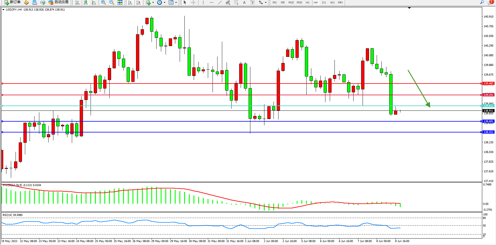 交易策略:139.011下方看跌,目标138.681  138.451