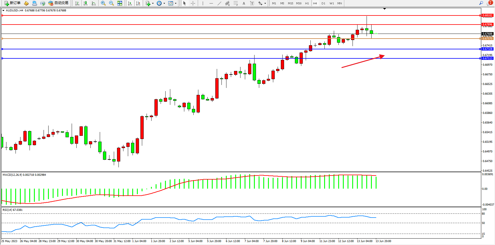 交易策略:0.67570上方看涨,目标0.67896  0.67102