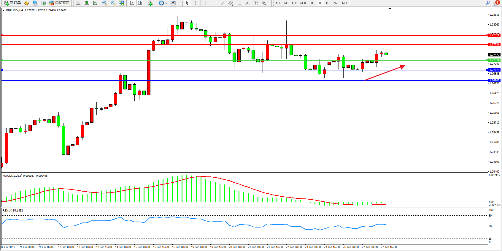 交易策略:1.27324上方看涨,目标1.27731  1.27971