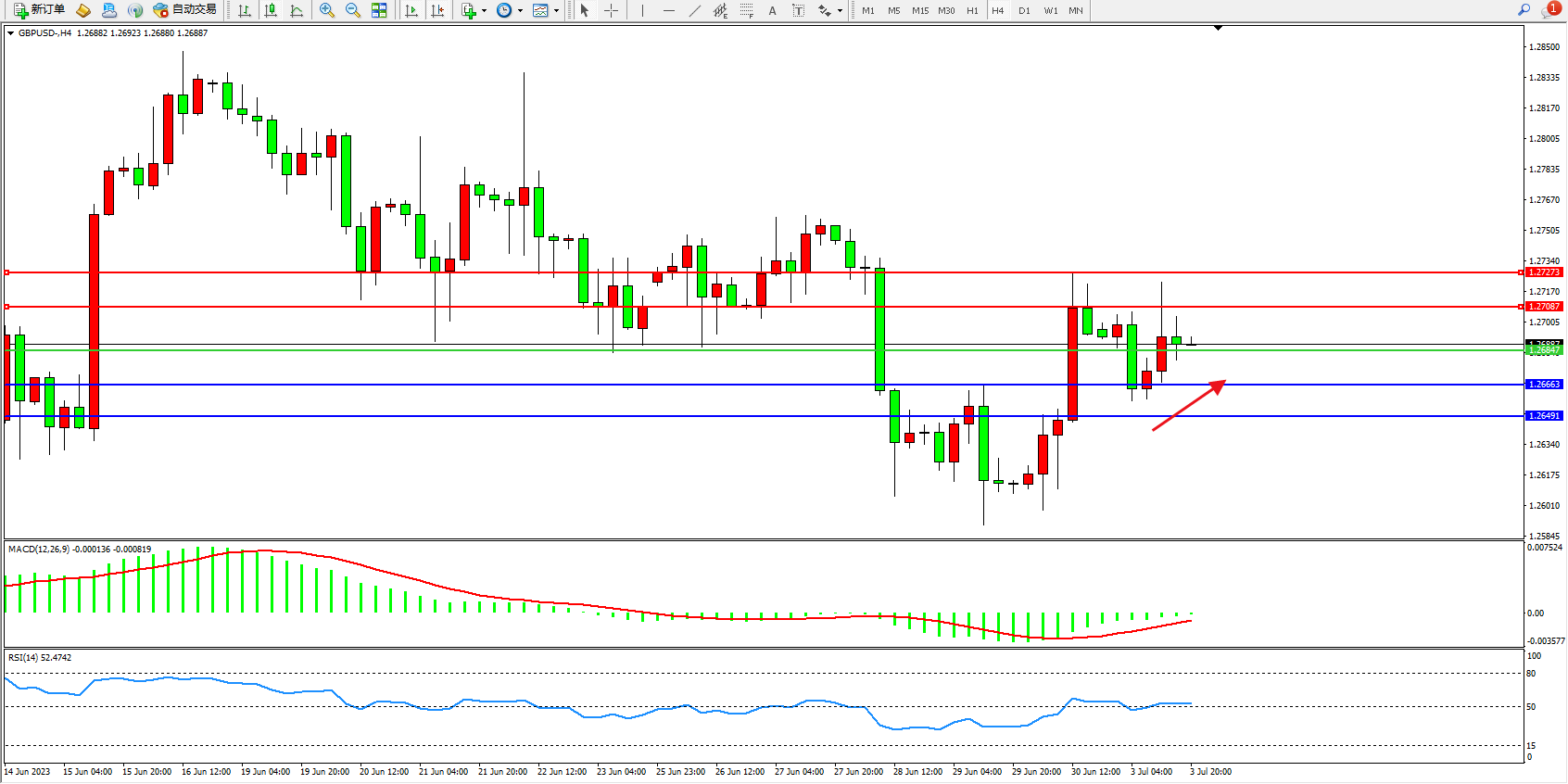 交易策略:1.26847上方看涨,目标1.27087  1.27273