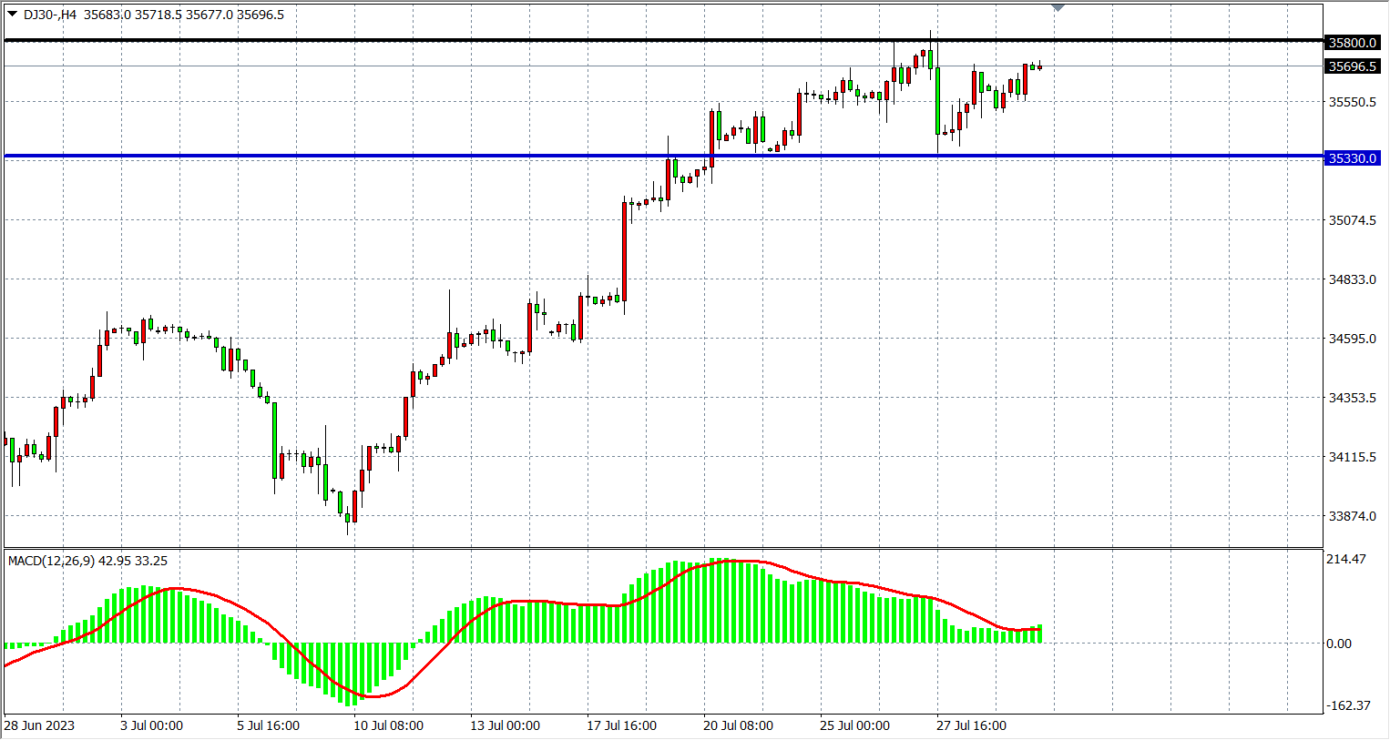 交易策略:35330 上方看涨,目标 35800 36000