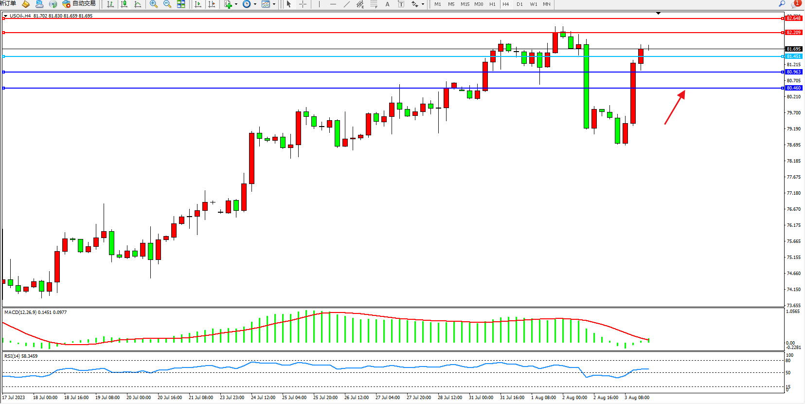 原油维持81.695附近震荡,沙特希望看到油价长期上涨至每桶90美元,以及亚洲的经济数据可能有所改善,从而开始考虑将100万桶/天的石油投回市场。