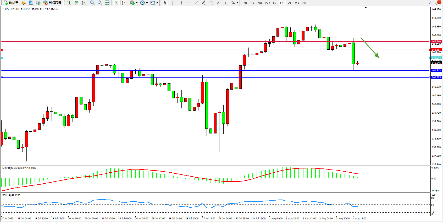 美元兑日圆维持141.846附近震荡,日本债务负担沉重,当局对利率升得太高持谨慎态度,因为这可能对经济产生负面影响。因此,日有可能继续贬值。