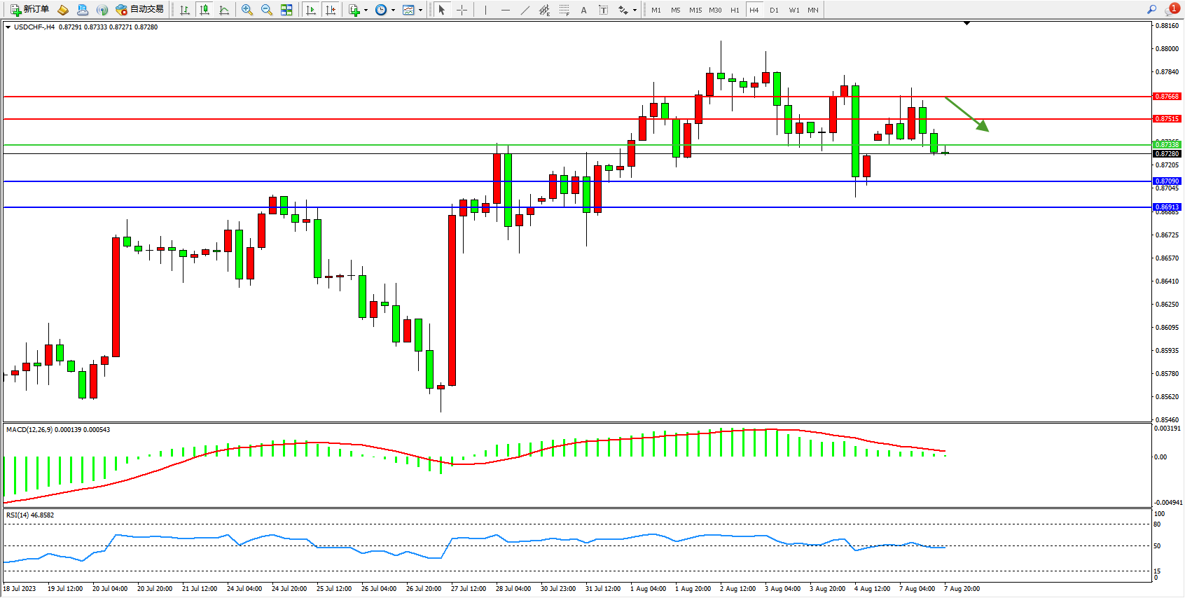 备选策略:0.87338上方看涨,目标0.87515 0.87668
