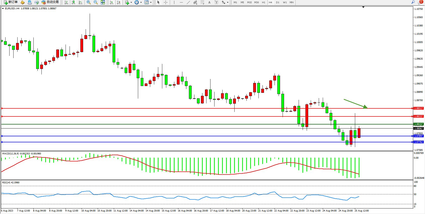 交易策略:1.08157下方看跌,目标1.07897  1.07762