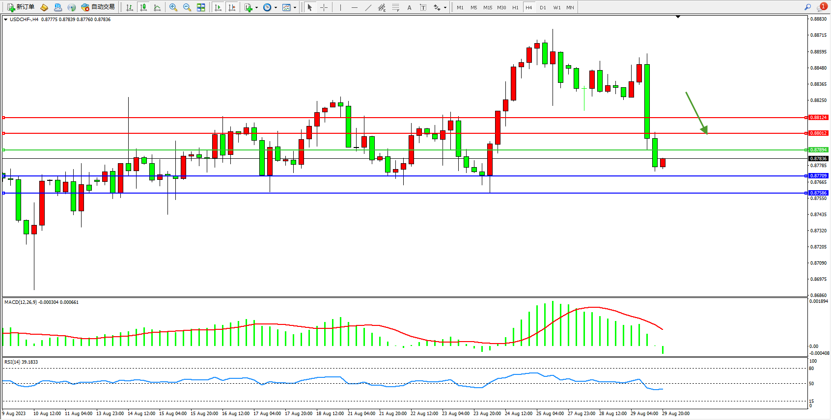 交易策略:0.87894下方看跌,目标0.87709 0.87586
