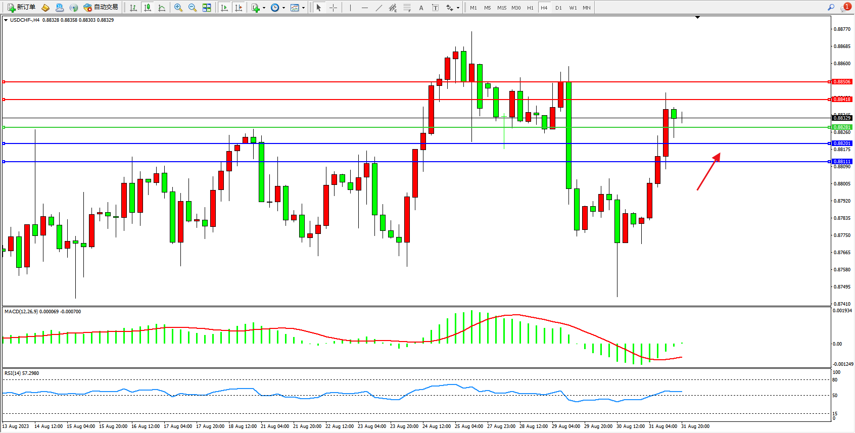 交易策略:0.88281下方看跌,目标0.88418 0.88506