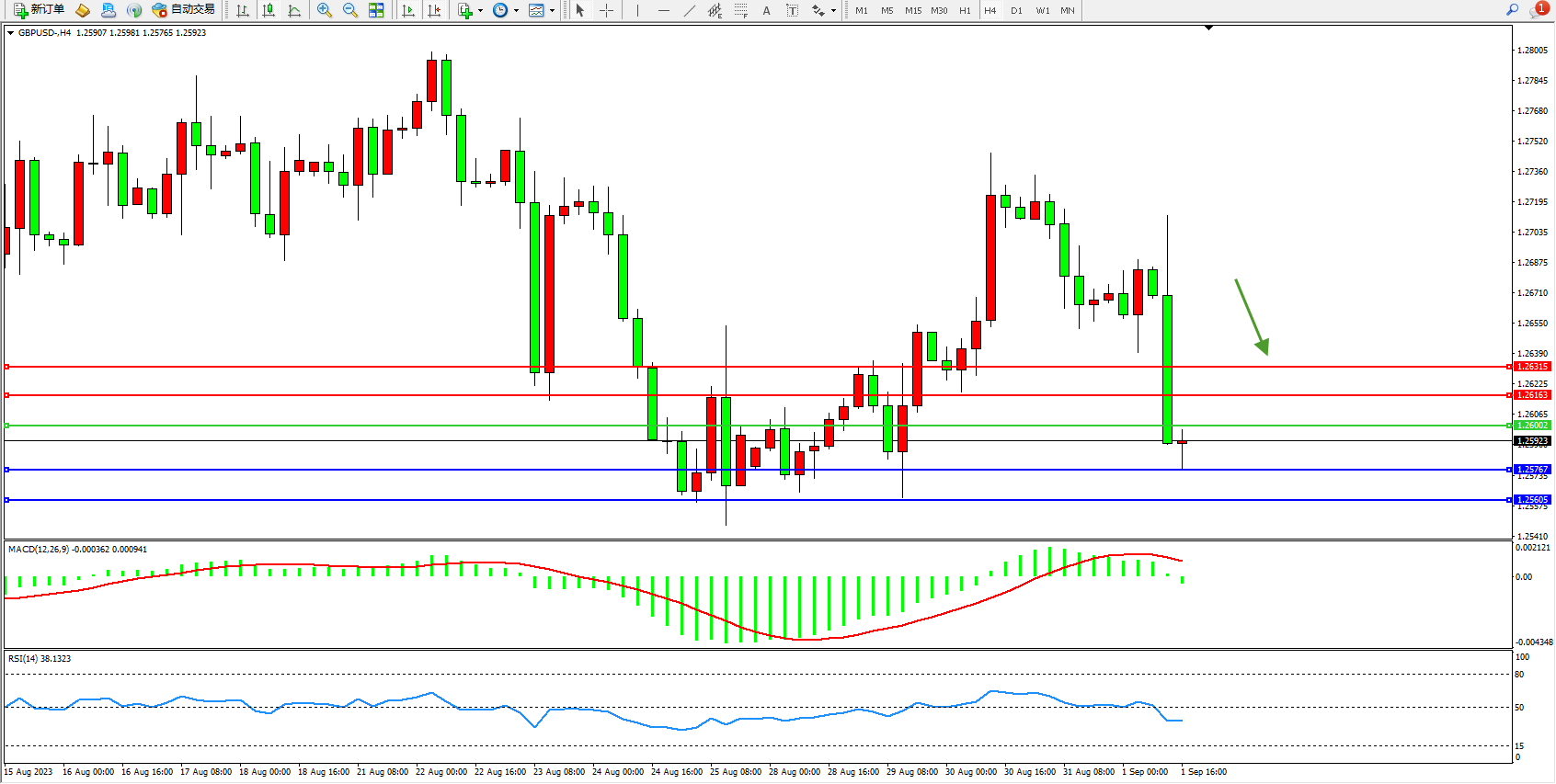 交易策略:1.26002下方看跌,目标1.25767  1.25605