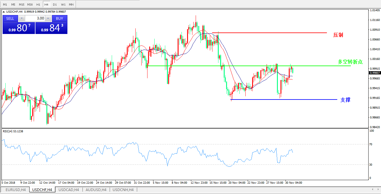 交易策略1.0005之下,看跌,目标价位为 0.9950 ,然后为 0.9913