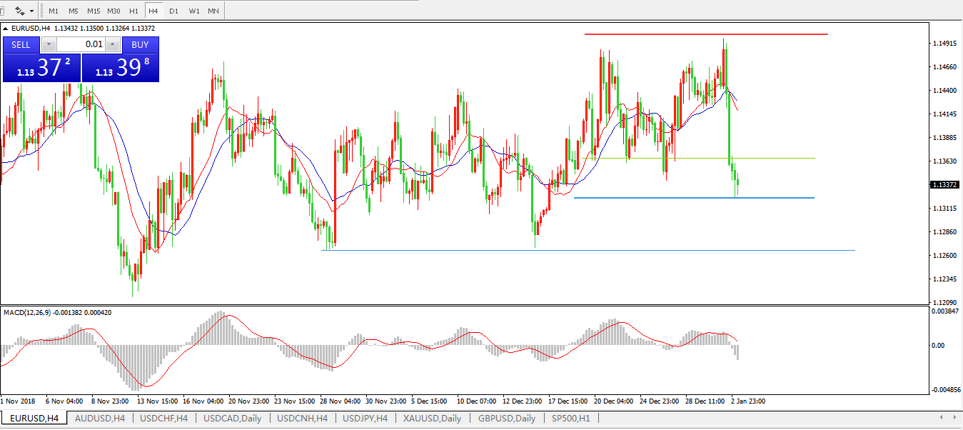 欧元兑美元EURUSD  4小时: