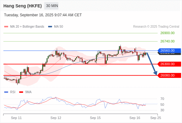 交易策略: 在 26560.00 之下,看跌,目标价位为 26300.00 ,然后为 26080.00 。