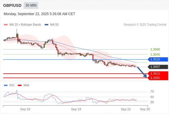 在 1.3510 之下,看跌,目标价位为 1.3410 ,然后为 1.3380 。
