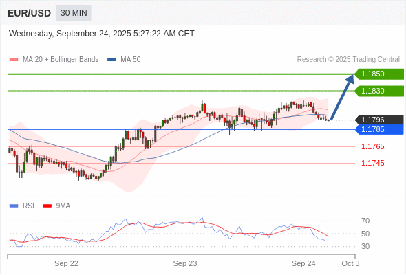 在 1.1785 之上,看涨,目标价位为 1.1830 ,然后为 1.1850 。