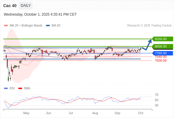 在 7760.00 之上,看涨,目标价位为 8000.00 ,然后为 8260.00 。