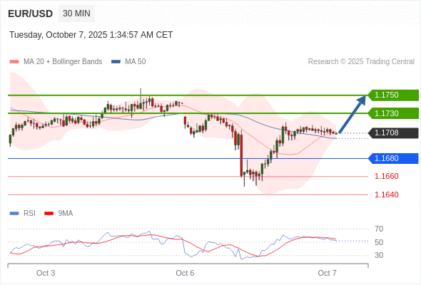 在 1.1680 之上,看涨,目标价位为 1.1730 ,然后为 1.1750 。