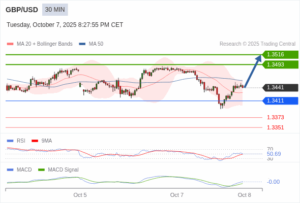 替代方案: 在1.3411以下,期待1.3373和1.3351。