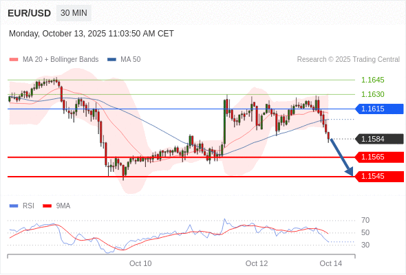 交易策略: 在 1.1615 之下,看跌,目标价位为 1.1565 ,然后为 1.1545 。