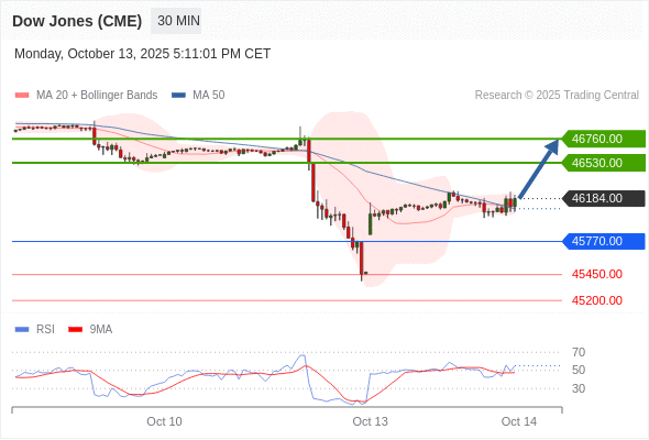 在 45770.00 之上,看涨,目标价位为 46530.00 ,然后为 46760.00 。