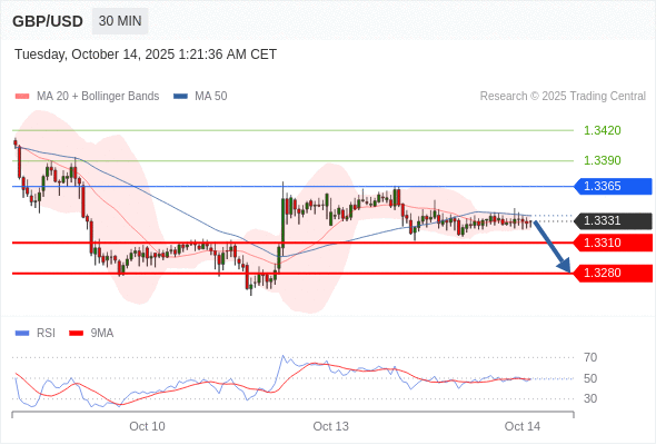 在 1.3365 之下,看跌,目标价位为 1.3310 ,然后为 1.3280 。