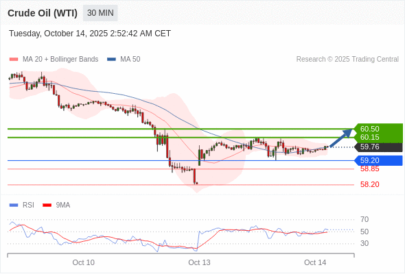 在 59.20 之上,看涨,目标价位为 60.15 ,然后为 60.50 。